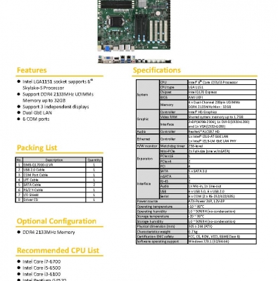 - Support DDR4 2133MHz UDIMMs Memory up to 32GB