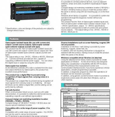 - It has the 16ch of Optocoupler isolated inputs (for use with current sink output / current source output) and 16ch of Optocoupler isolated open-collector outputs (current sink type). The output rating is max