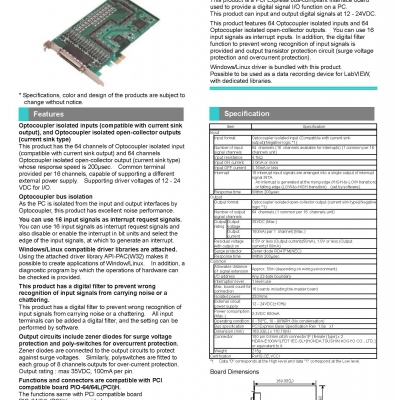 - Functions and connectors are compatible with PCI compatible board PIO-64/64L(PCI)H